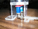 Dabei gab es ein kleines Problem: Ich habe nur drehbare 90° Anschlüsse mit 1/4" Gewinde bekommen, aber mir stand nur ein Gewindeschneider mir 1/8" zur Verfügung. Also was tun? Extra einen 1/4" Gewindeschneider kaufen? Für zwei kleine Gewinde? Das muss ja nicht sein. Also schaue ich doch mal im Keller nach, was sich so findet. Und siehe da, ich bin fündig geworden. Adapterstücke von 1/8" Außengewinde auf 1/4" Außengewinde und Gewindehülsen aus blau eloxiertem Alu mit 1/4". Jetzt noch mit Teflonringen als Dichtung zusammengeschraubt und in die Bodenplatte des Ausgleichsbehälters gedreht. Hierbei musste ich auf Dichtungen von Bierflaschen zurückgreifen, da die Gewinde leider etwas schief geworden sind und die Teflonringe sich nicht so viel zusammendrücken lassen.